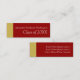 Cartões de nomes de graduação são uma manutenção de excelente para entregar aos seus amigos e associados de classe mais velho. Eles anunciam sua próxima formatura e são uma maneira de compartilhar seu evento especial. Este design apresenta um fundo vermelho escuro com um bar amarelo-ouro ao longo do lado, com o seu nome, ano de aulas de graduação na frente, e três linhas de texto na parte de trás para as suas informações de contato, como redes sociais ou números de telefone celular.