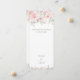Um cartão de papelaria de casamento pintado com aquarela rosa claro medindo 4 polegadas de largura por 9 polegadas de altura, apresentando rosas rosa claro e folhagem de eucalipto prateado com fundo branco para personalizar com seu texto.