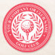 Crie seu próprio conjunto personalizado de porta-copos de golfe. Um design clássico com uma coroa de louro da vitória, emoldurando uma bola e tee. Este modelo editável pode ser personalizado para um clube de golfe, clube do campo, nome da empresa, jogador de equipe, membro do clube de golfe ou golfista individual. Perfeito para comemorar dias especiais, eventos corporativos, competições, torneios e muito mais. Cores de impressão: vermelho e branco. Explore a coleção online para designs impressos correspondentes!