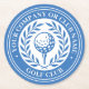 Crie seu próprio conjunto personalizado de porta-copos de golfe. Um design clássico com uma coroa de louro da vitória, emoldurando uma bola e tee. Este modelo editável pode ser personalizado para um clube de golfe, clube do campo, nome da empresa, jogador de equipe, membro do clube de golfe ou golfista individual. Perfeito para comemorar dias especiais, eventos corporativos, competições, torneios e muito mais. Cores de impressão: azul e branco. Explore a coleção online para designs impressos correspondentes!