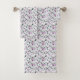 Lilases e roxo encobrem este conjunto de toalhas moles. Toalha de banho, toalha de mão e toalha de banho.