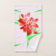 Este conjunto de toalhas de banho apresenta um design floral em tons cor-de-rosa-vermelho num fundo de canvas de rosa claro adornado com delicadas linhas diagonais brancas, criando um elegante conjunto floral.