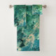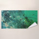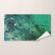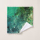 Uma composição dinâmica de abstrato apresenta uma matriz de formas e padrões giratórios em vários tons de verde, preto e azul