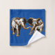 Este adorável conjunto de toalhas para amantes da natureza aventureiros apresenta uma arte decorativa de dois elefantes em um fundo azul. Personalize a cor de fundo para corresponder à decoração do seu próprio banheiro!