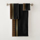 Um lado destas toalhas elegantes é negro como o azeviche contínuo e o outro lado é um mar das ondinhas, com uma listra da beira do ouro no meio! Este grupo distintivo de toalha adicionará a cor e o estilo deliciosos a sua decoração do banho! Uma grande maneira de começar seu dia no estilo!