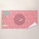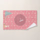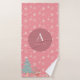 Este adorável design de toalha de banho com tema natalino apresenta flocos de neve e animais de floresta como cervo, raposa, coelho e ouriço, e também uma árvore de Natal sobre fundo rosa pastel.