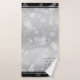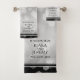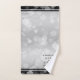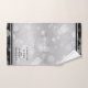 Celebre o aniversário de casamento da 25 prata com este conjunto de toalhas de na moda! As letras negras elegantes com confete hexagonal em um fundo de folha prateada junto com bares pretos no topo e no fundo adicionam um toque memorável para esta ocasião especial e marco extraordinário. Personalize com os nomes dos casais, datas de casamento e mensagem de parabéns. Design © W.H. Sim. Mais informações em zazzle.com/expressionsoccasions