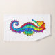Articulação artificial, brilhante, arco-íris, cavalo de mar poligonal sobre fundo branco. Tatuagem brilhante.