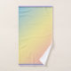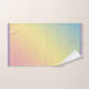 Um cheio arco-íris de cores pastel decora este conjunto de toalhas de banho. Cores de rosa, verde, azul, amarelo, roxo claro, etc. Também disponível nos acessórios do banheiro. Excelente para coloração pastel para uma decoração do banheiro. Misture e combine.