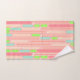 Este conjunto de toalhas tem um design de deco de arte inspirado em ovais longos cheios de cor sólida ou linhas em rosa, verde e azul.