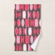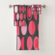 Este conjunto de toalhas tem um design de arte feito de ovais e meio ovais em preto, branco e tons de rosa.
