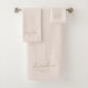 Conjunto de toalhas de assinaturas de scripts cor-de-rosa com borrão mínimo monograma