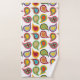 Este conjunto de toalhas tem um pano de lavagem laranja queimado, uma toalha de mão de framboesa, e uma toalha de banho com um design moderno do século médio de paisleys dispostos uns sobre os outros em cores retrorreflectoras com uma camada com padrão atômico.