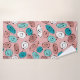 Este conjunto de toalhas tem um design atômico moderno do século médio de contornos ovais com pequenos círculos e ovais de cor sólida dentro.