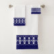 Padrão geométrico elegante azul e branco do conjunto de toalhas de banho.