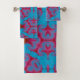 Uma toalha de banheiro com um padrão azul turquesa e vermelho inspirado na Persa.