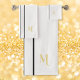 Conjunto De Toalhas Bandas Douradas, Monogramas, brancas