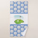 Este conjunto de toalhas do banheiro apresenta um design de bola de golfe azul e branco/verde de golfe. Personalize a toalha da mão com seu nome ou monograma inicial. Este conjunto de toalhas seria um Dia de os pais pensativo, nova casa, aposentadoria ou presente de aniversário para ele.