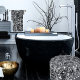 O motif botânico, preto e branco, opulente, apresentado neste design, faz lembrar os impressões de luxo italianos dos anos 1960 e 1970. Esse modelo barroco ou rococó floresceu na Europa nos séculos 17 e 18.