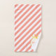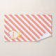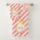 Conjunto de toalhas de moda com bela coroa de rainha e desenho de flores cor-de-rosa com listras diagonais coral e branco no fundo. O texto MÃE pode ser personalizado.