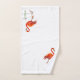 Belo Flamingo Rosa e folhas de verduras no Conjunto de Toalhas Brancas Brancas. Lindas toalhas de Banho Elegantes.