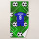 Um na moda e um design desportivo moderno para qualquer fã de futebol ou de futebol que apresente uma camisola de futebol com texto personalizável para o nome e o número do jogador de futebol, fã de futebol ou treinador de futebol. Ele também apresenta um fundo verde moderno representando grama em um campo de futebol e uma bola de futebol.Podemos criar este design em qualquer combinação de cores para as cores da sua equipe de futebol, basta usar o contato conosco através da loja GiftsBonanza com a sua solicitação.