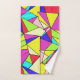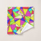 Lá estava eu a olhar para Bauhaus seguido de Mondrian e isto veio. Oops! Uma parede de bonito triângulos multicoloridos faz as toalhas mais avançadas para qualquer decoração do banheiro. Ponta de design; tenha um banheiro neutro com esses acessórios vívidos!
