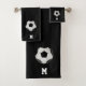 Bola de futebol e monograma no conjunto preto de toalhas de Banho. Design para amantes de futebol!