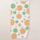 Aproxime o decor do banho com um padrão geométrico bonito de bolinhas verdes e laranja contra branco nítido. A toalha da mão é verde estável. Uma design geométrica moderna e divertida. Designs originais por TamiraZDesign.