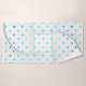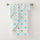 Colocado sobre um fundo branco de canvas pristina, este trabalho de arte de toalha de banho consiste numa mistura vibrante de uma bolinhas e padrões geométricos.