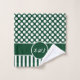Uma bolinhas esverdeada e branca, com monograma, e um padrão listrado decoram as toalhas de banho. Modifique a cor de preenchimento e as iniciais para personalizar o presente elegante de aquecimento doméstico para um casal. Além disso, altere a fonte, a cor da fonte ou o tamanho da fonte das iniciais. Por favor, lembre-se de alterar também a cor da forma. Para obter ajuda sobre a personalização de cores e design, entre em contato com https://t.me/KBMD3signs_chat.