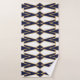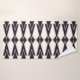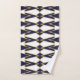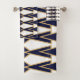Este conjunto de toalhas tem um design de deco de arte de triângulos e diamantes que se parecem com arcos em azul e ouro.