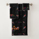 Desapareça para se divertir com este conjunto de toalhas de banheiro personalizado do Space Rocket design. Personalize o banheiro com suas próprias informações que são facilmente inseridas na modelo... O design tem foguetes, planetas e estrelas girando sobre fundo preto. A tipografia da idade espacial é facilmente transformada para seu próprio banheiro pessoal.