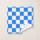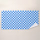 This bath towel set features a classic bright blue and white checkerboard pattern.