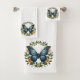 Elevem a decoração da casa de banho com esta toalha de banho encantadora, incluindo uma toalha de banho, toalha de mão e pano de lavagem. Cada peça apresenta um design captivante de uma borboleta azul graciosa descansando em meio a uma luxuosa coroa de folhas verdes e flores laranja vibrantes. Este movimento inspirado na natureza traz um senso de tranquilidade e elegância para o seu espaço, fazer-o uma escolha perfeita para criar uma serena e convidar a atmosfera em sua casa.