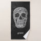 Cabeça de crânio design de textura criativa preto-e-branco-preto-e-branco. Conjunto de toalhas do banheiro com nome impresso personalizado. Decoração única, legal, moderna e assustadora do estilo vintage. Imagem copyright Marg Seregelyi Fotografia.
