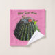 Esta imagem é derivada da minha pintura acrílica, Barrel Cactus. Opção para alterar o texto no pano de lavagem e a cor de fundo neste conjunto de toalhas suculentas.