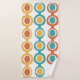 Este conjunto de toalhas tem um pano de lavagem laranja, uma toalha dourada, e uma toalha de banho com um design moderno do século médio de círculos ligados entre si fazer uma corrente com círculos brancos e coloridos dentro. Quer cores diferentes? Me mande mensagem.