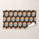 Toalhas de banho com um padrão repetitivo que apresenta uma ilustração aquarela de uma câmera laranja e um buquê floral descansando sobre ela. As flores do buquê são rosas claro e laranja com folhas verdes, um bonito arranjo floral.