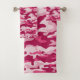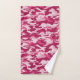 Estas toalhas de banho de camo femininas apresentam um padrão de camuflagem em tons de rosa escuro e rosa pálido.