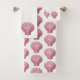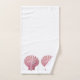Este conjunto de toalhas de banho bonitinho apresenta conchas de escalões rosa costeira num fundo de branco sólido.