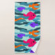 Este conjunto de toalhas tem uma paisagem com algas lacrimejantes e peixes laranja, rosa e roxo.