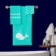 Conjunto De Toalhas Cartoon Baleia Aqua Azul Teal