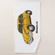 Um carro clássico amarelo feliz. Desenhado no estilo de desenho animado.