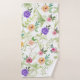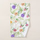 Este Chique Floral Bath Towel Set tem flores cor-de-rosa, flores amarelas, flores roxas e flores vermelhas em um campo de folhas verdes.