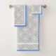 Conjunto De Toalhas Cinza azul e padrão geométrico branco