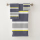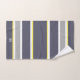 Faça uma declaração com esta cinza escura ousada, branca e toalha de banho listrada de cinza clara com sotaques dourados amarelos brilhantes. Tanto a toalha da mão como a toalha do banho têm o seu monograma em branco no fundo. Especialmente apropriado para um homem, mas atraente em qualquer banheiro.