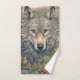 lobo-cinza entre folhas na floresta, arte para amantes de lobos.