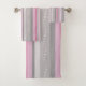 Conjunto De Toalhas Cinzas E Listras Rosa