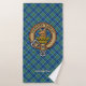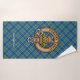 Crachá da crista Clan Keith cercado por uma correia e fivela sobre fundo tartano. Texto personalizado em cada toalha.